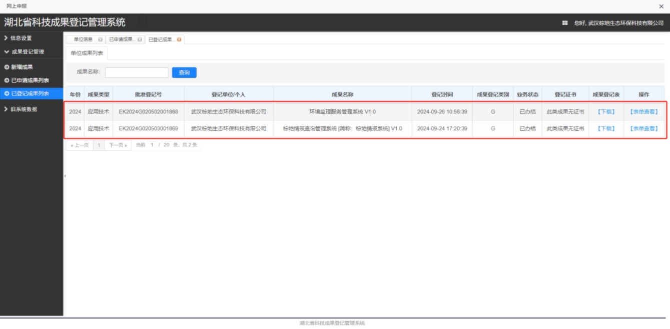 2024年9月24日至26日,我司在武漢市科學(xué)技術(shù)局對我司獨立研究的棕地情報查詢管理系統(tǒng)、環(huán)境監(jiān)理服務(wù)管理系統(tǒng)進行了登記。